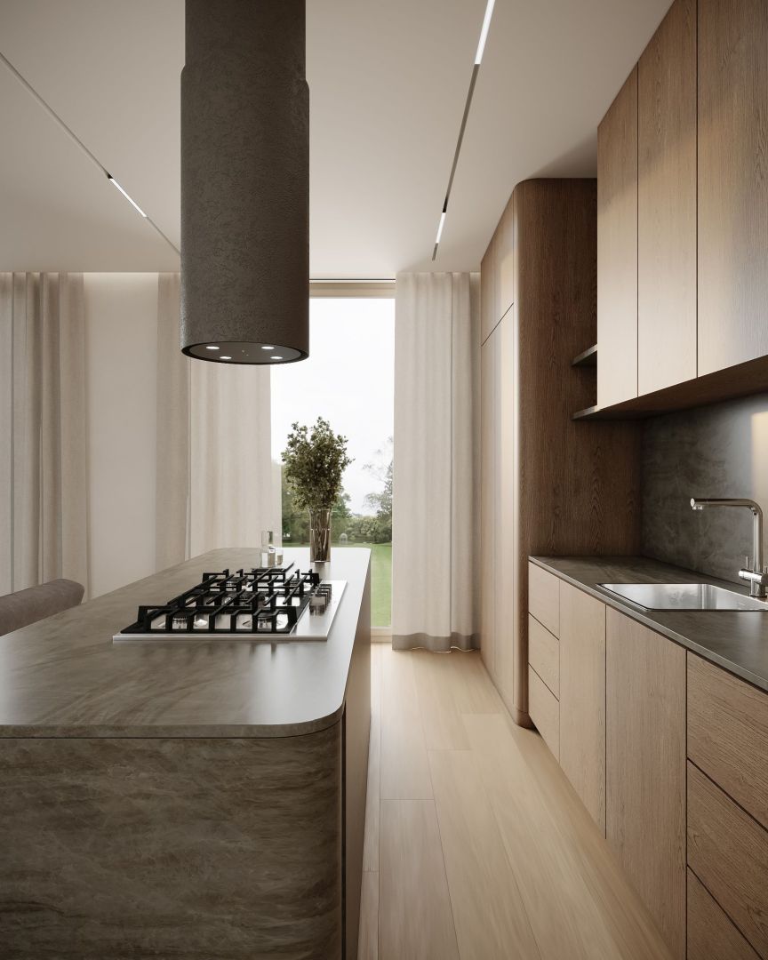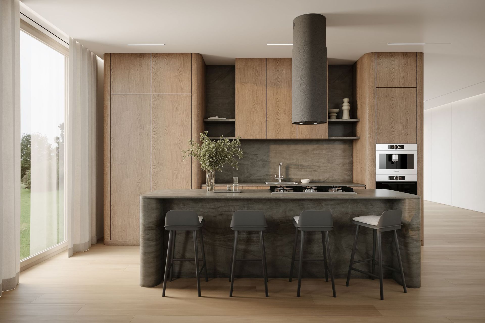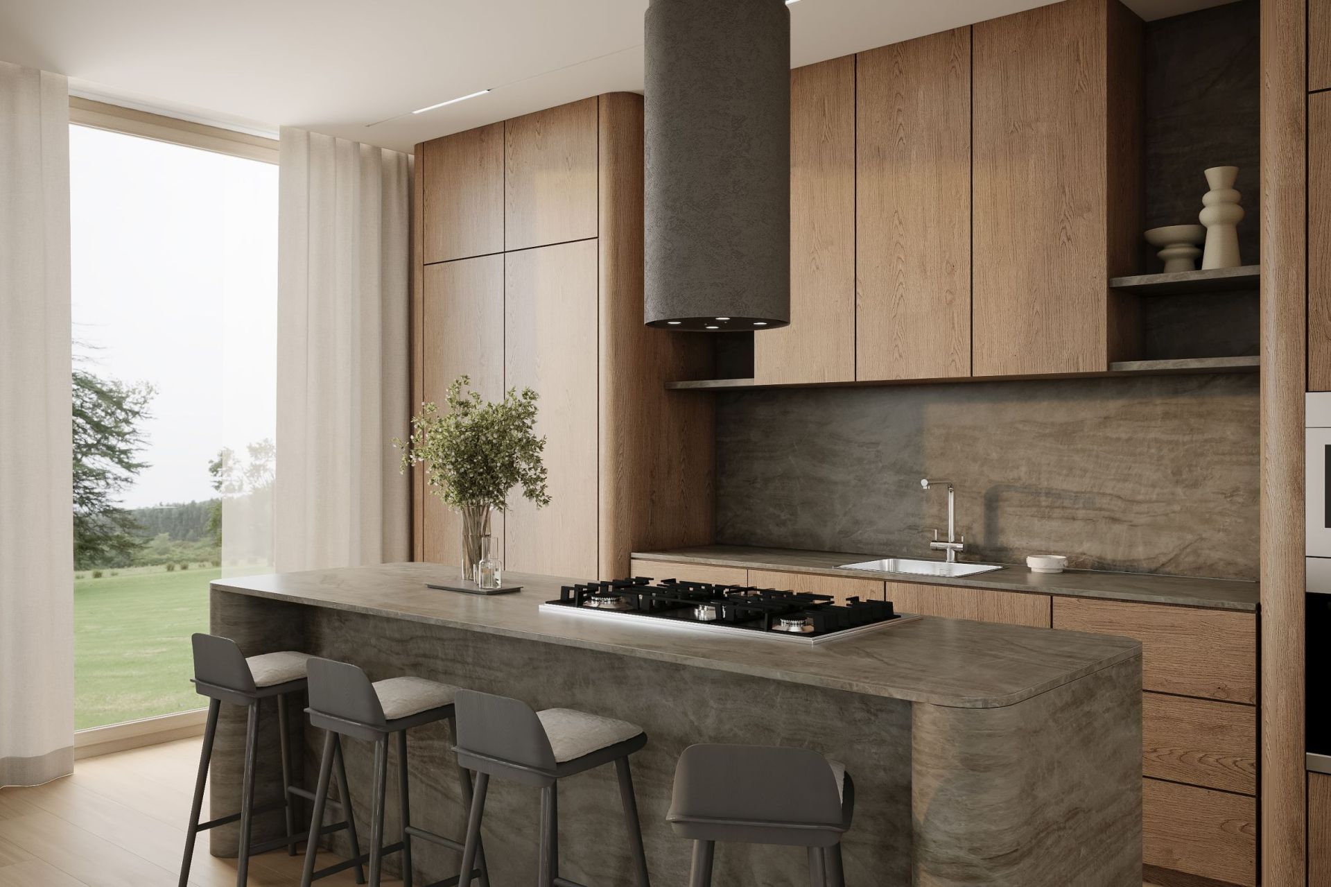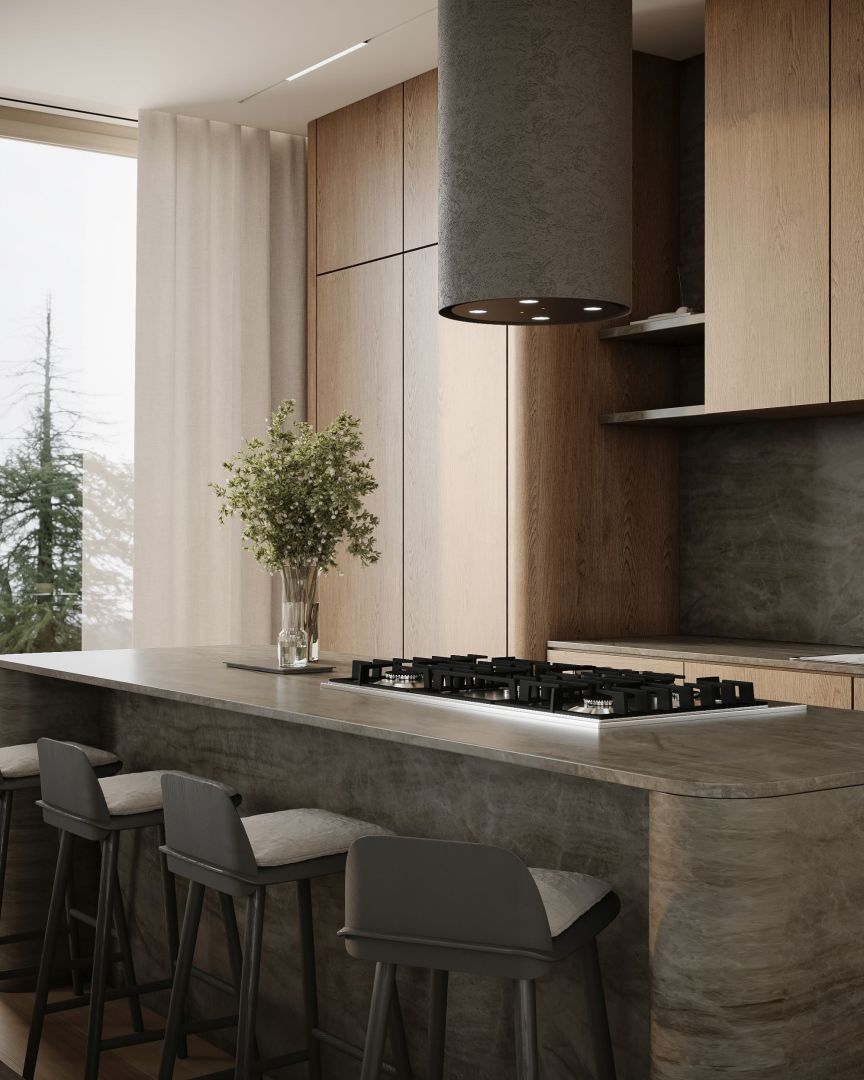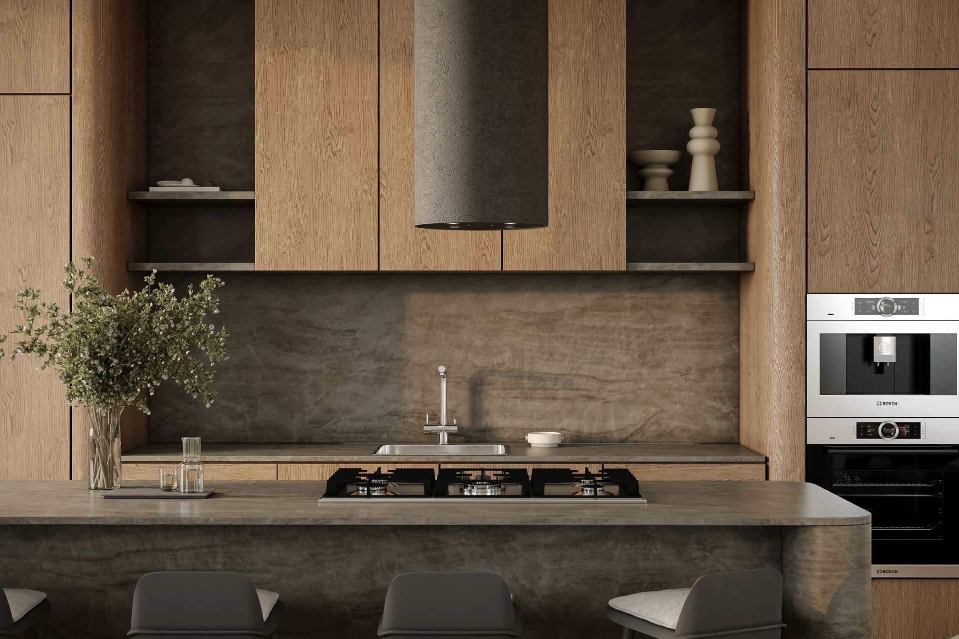 Tmavě šedá betonová digestoř je vybavena kontrastním černým skleněným panelem, který podtrhuje výraznou barvu a industriální charakter modelu. Jemná elegance v kombinaci s dokonalou funkčností činí z digestoře Columni Stono Dark Grey ideální doplněk moderních interiérů, kterým dodává sofistikovaný styl. Díky tenké, 2–3mm vrstvě povrchové úpravy zůstává konstrukce lehká a snadná k montáži