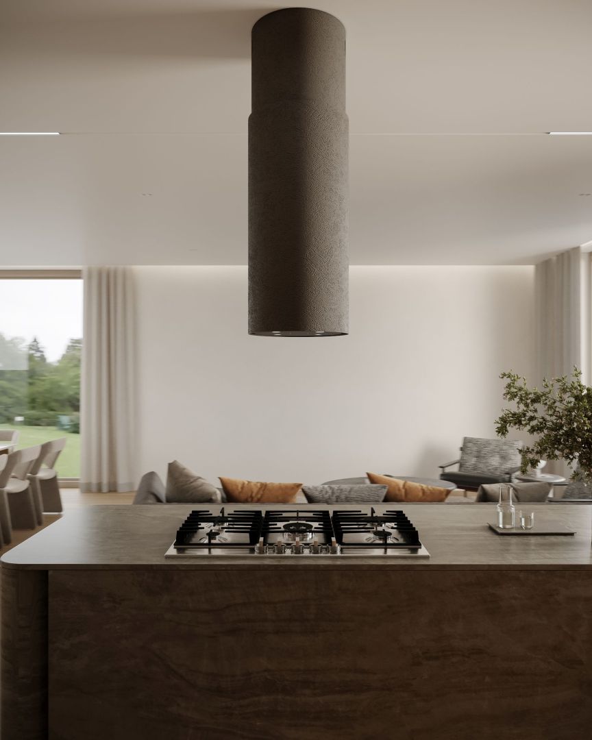 Každá digestoř z řady Columni Stono Dark Grey je ručně výráběna, což znamená, že každý kus je individuálně pokryt betonem. Díky tomu má každý výrobek jedinečný vzhled, a drobné rozdíly mezi fotografiemi a skutečným produktem zdůrazňují řemeslný charakter výroby.