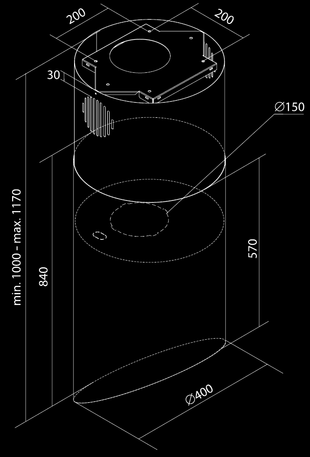 Moderní ostrůvková digestoř, dostupná ve verzi s odtahem i recirkulací, vyniká také vyladěnými technickými parametry. Výkonná turbína o síle 850 m³/h, energeticky úsporné LED osvětlení, elektronické ovládání, dálkový ovladač, vícevrstvé hliníkové filtry a špičkové materiály dělají z modelu Hiro Color White-Gold zařízení, které je efektivní, tiché a snadno ovladatelné.