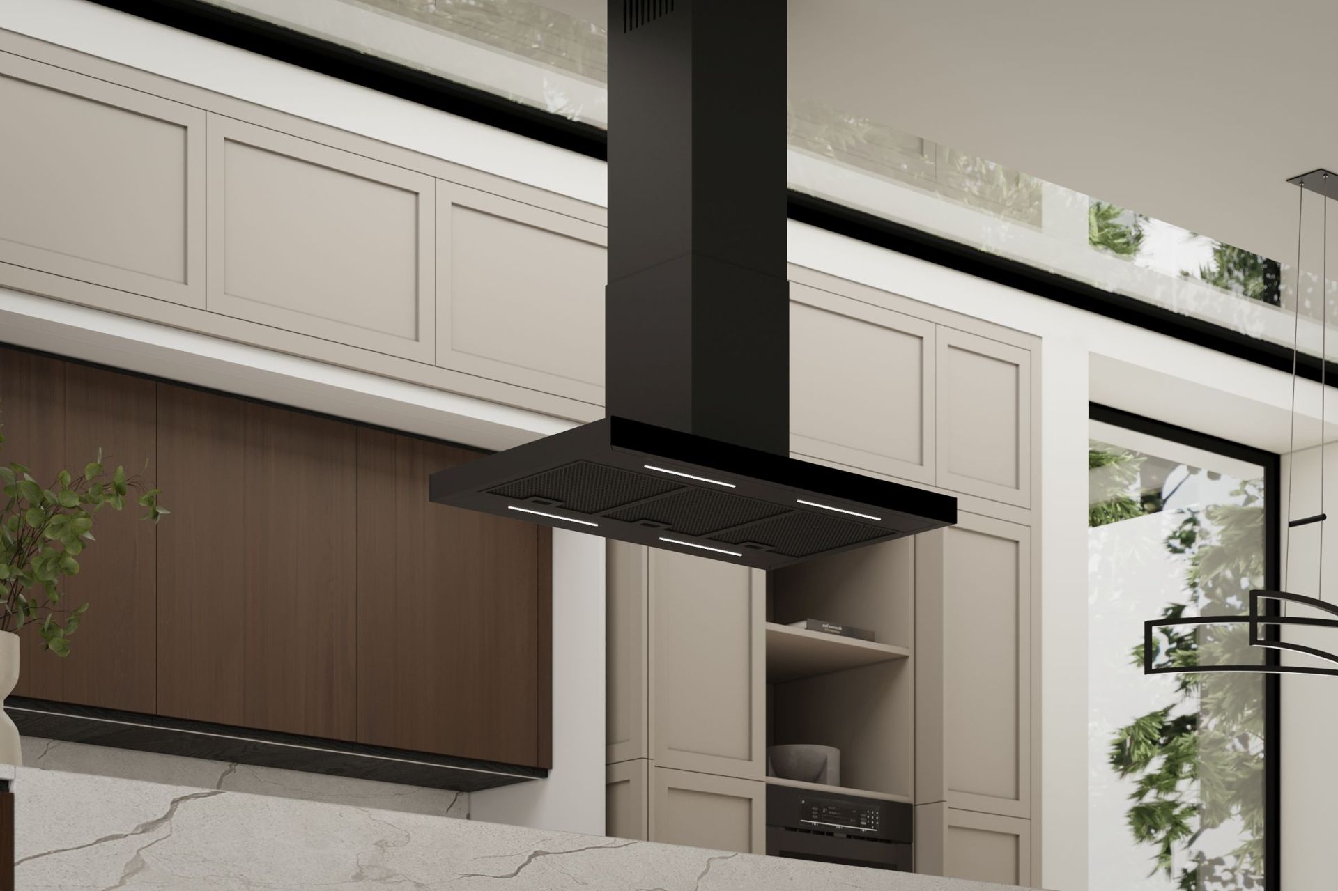 Ostrůvková digestoř Sento Eco Island Black Matt kombinuje elegantní černý design, výkon 500 m³/h a úsporné LED osvětlení. Třístupňová regulace, nastavitelná výška a snadná údržba z ní činí ideální volbu pro moderní kuchyně.