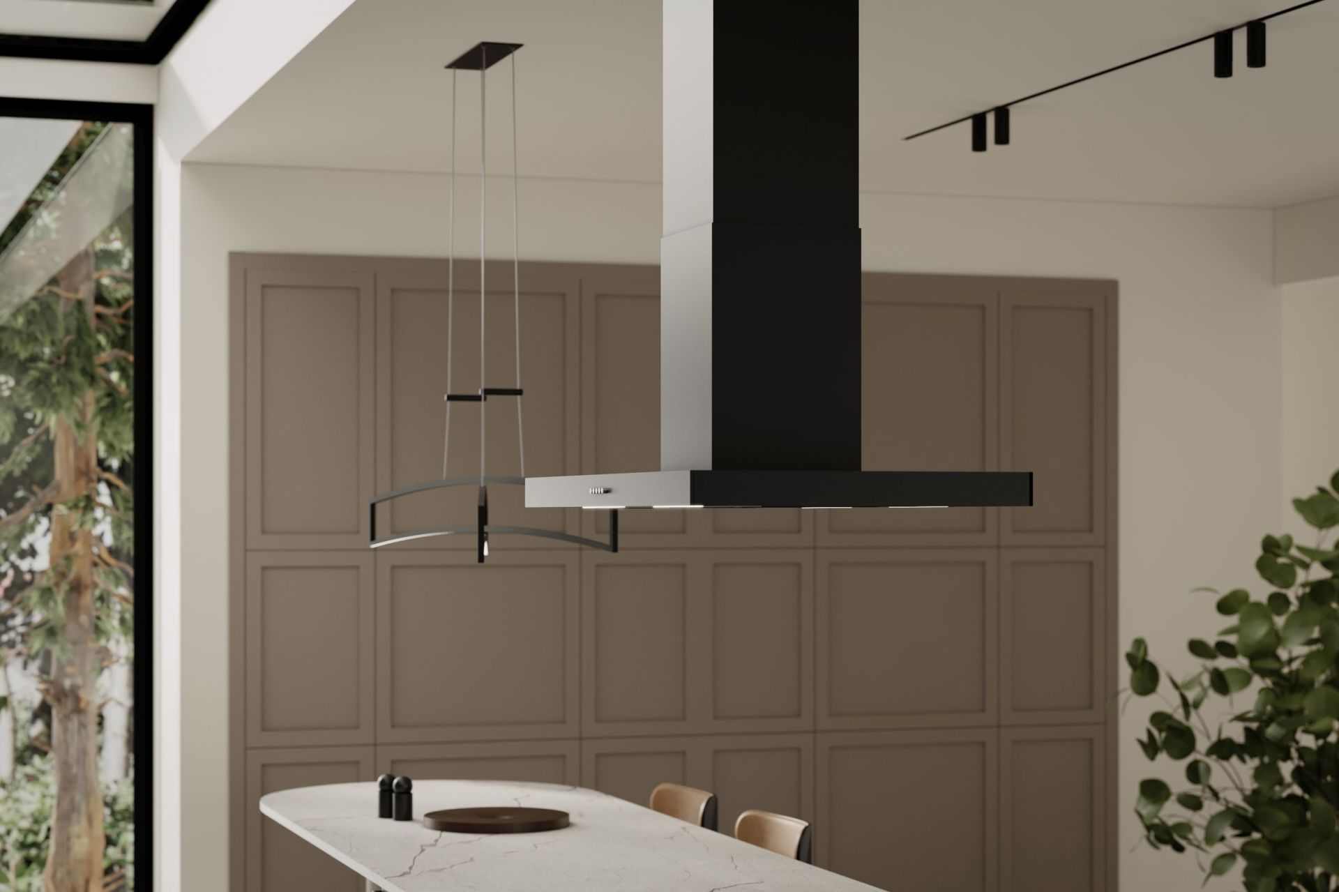 „Digestoř Sento Eco Island Black Matt je skvělou volbou pro ty, kteří chtějí kombinaci elegance a praktičnosti. Černý matný povrch působí moderně a snadno se udržuje. Úsporné LED osvětlení poskytuje dostatek světla nad varnou deskou a flexibilní nastavení výšky umožňuje pohodlnou instalaci nad každou varnou zónu.“