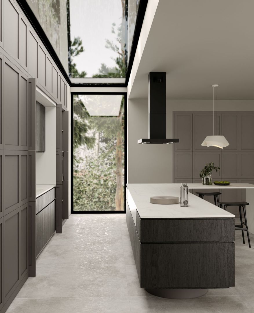 Ostrůvková digestoř Sento Island Strips Black Matt kombinuje moderní design ve tvaru obráceného T, výkon 850 m³/h a úsporné LED osvětlení. Snadná údržba, nastavitelná výška a pokročilé ovládání Soft-Touch s dálkovým ovladačem z ní činí ideální volbu do každé kuchyně.