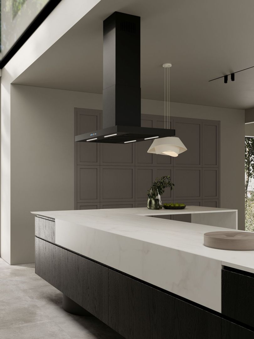 Díky kombinaci elegantního černého provedení, minimalistického tvaru a vysokého výkonu digestoř harmonicky zapadá do různých stylů interiéru.