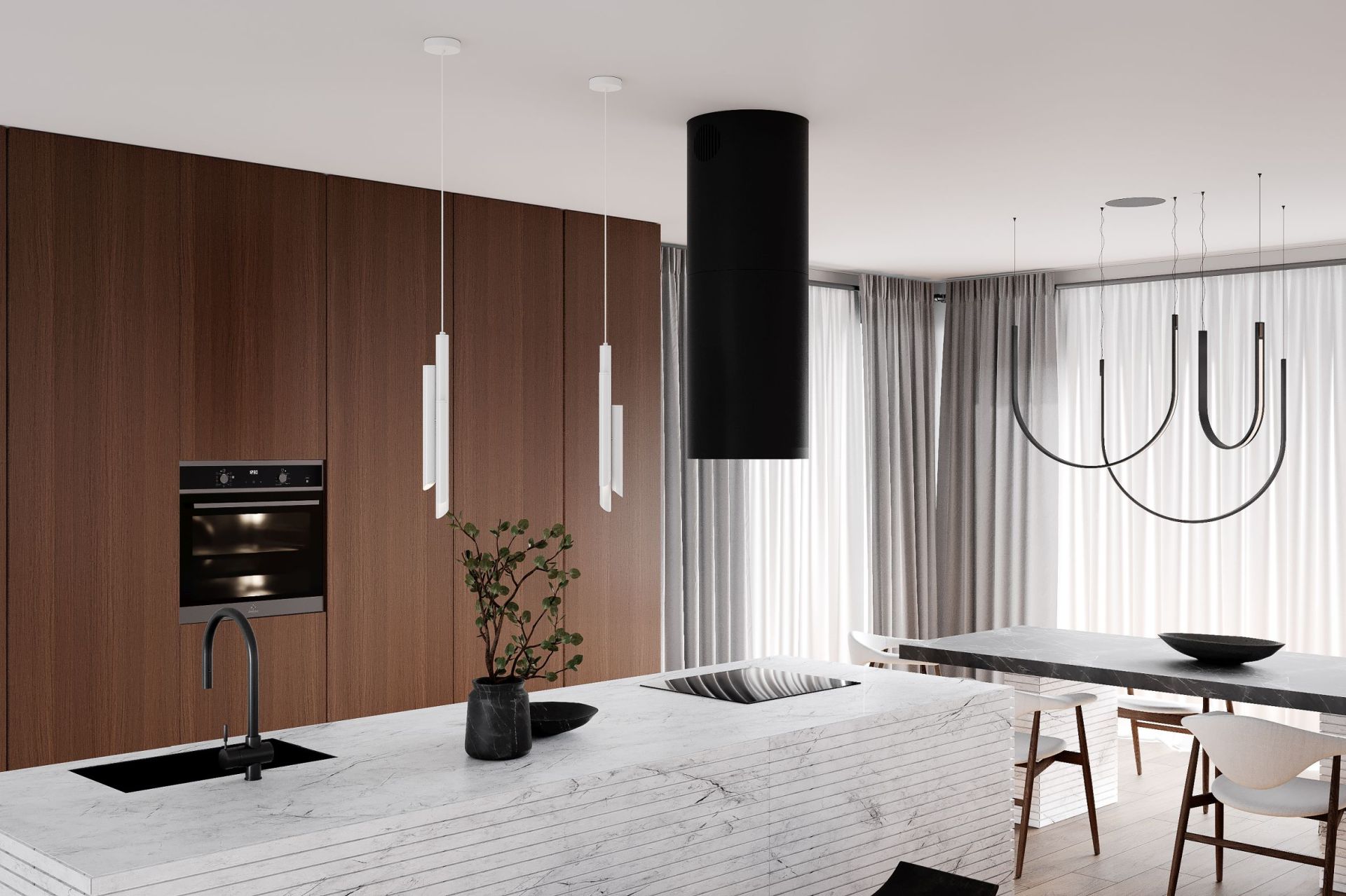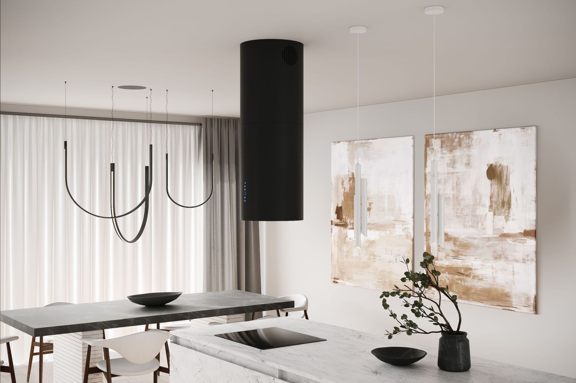 Ostrůvková digestoř Tubo patří mezi nejoblíbenější modely z naší nabídky. Kombinace matné černé barvy a tvrzeného skla ji dodávají jedinečný design. Jemný lesk tvrzeného skla a matná černá barva představují nepřehlédnutelnou a praktickou kombinaci, díky které se digestoř velmi snadno udržuje. Kromě toho lze spodní víko digestoře otevřít, což usnadňuje přístup k filtrům. Je vybavena úsporným a účinným LED osvětlením a výkon digestoře uspokojí i ty nejnáročnější zákazníky.