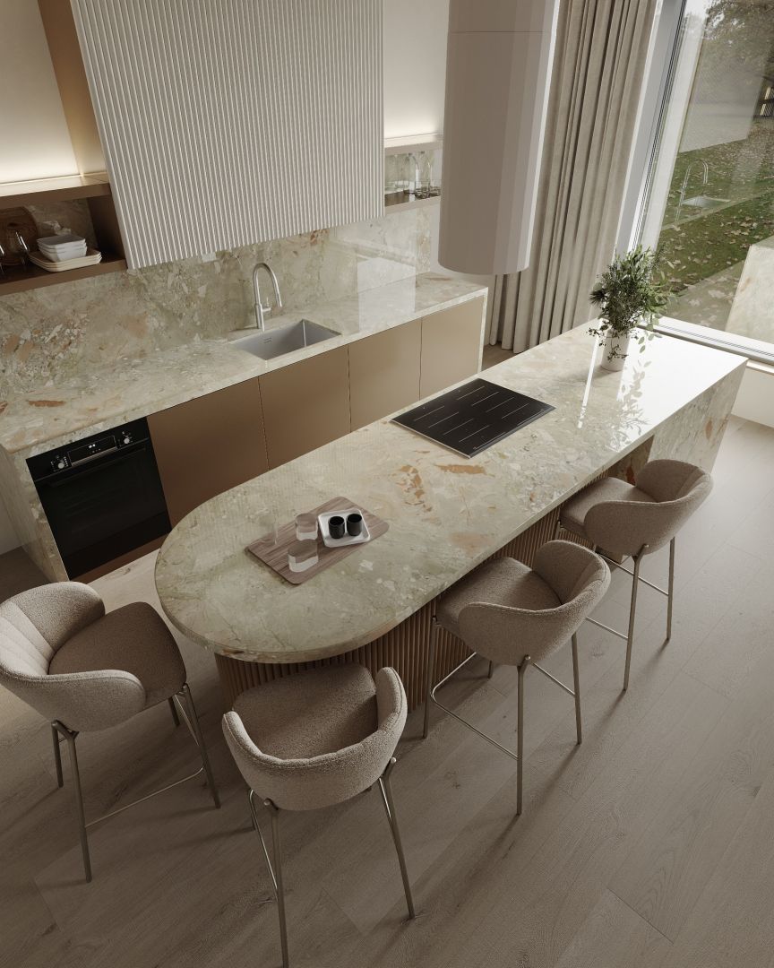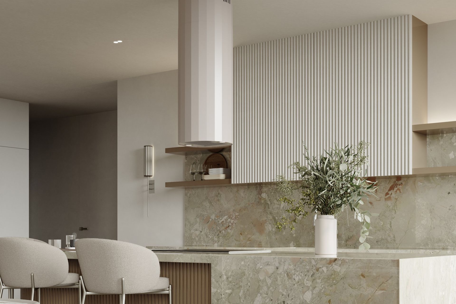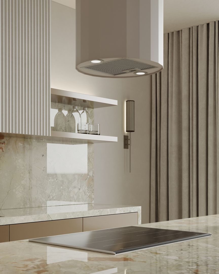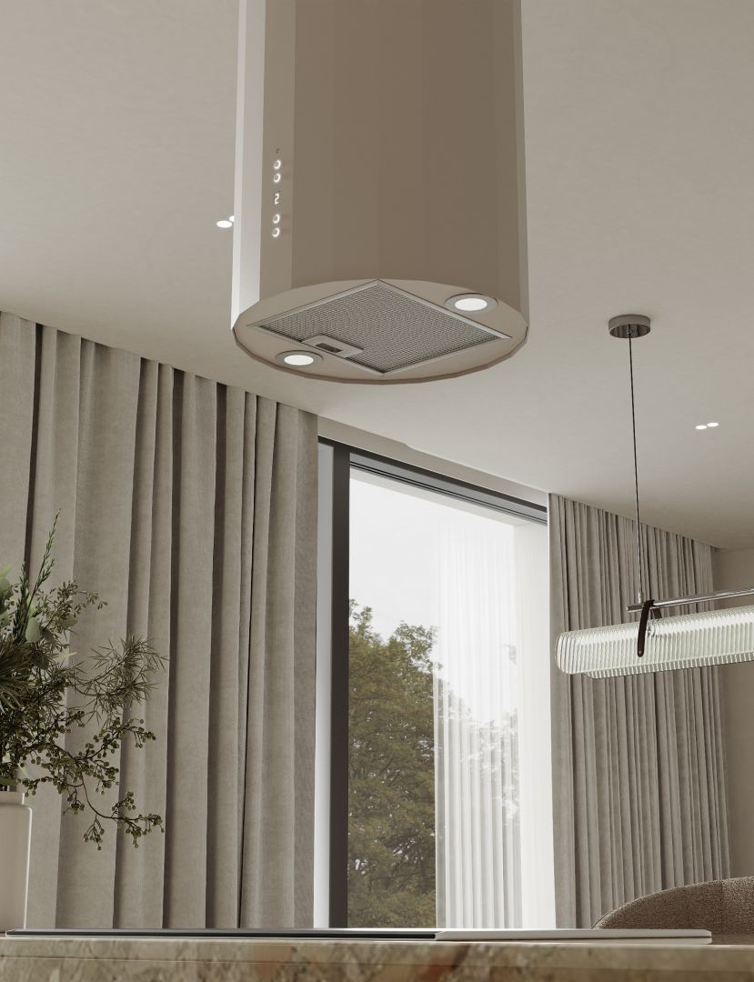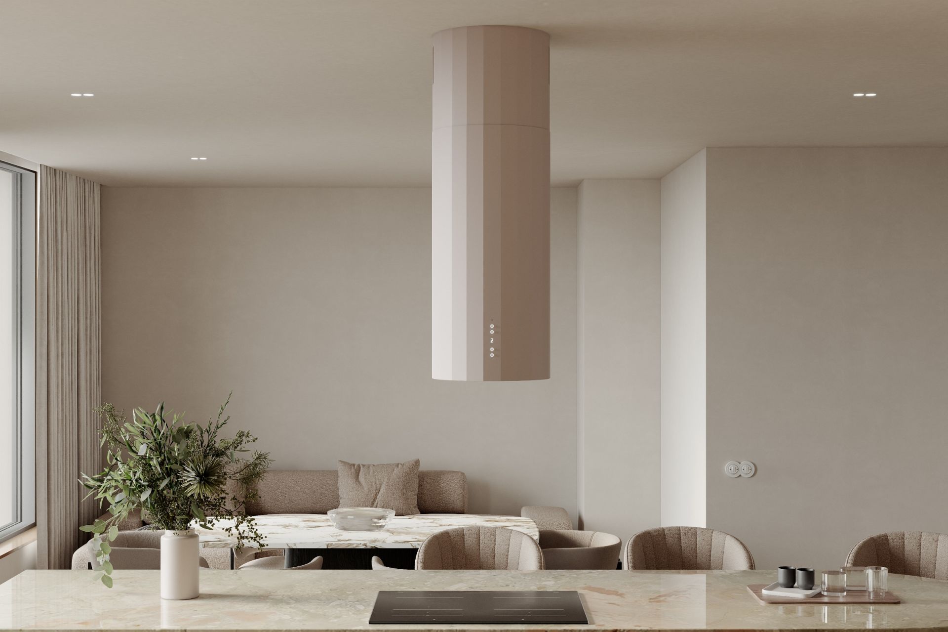 Kuchyňská digestoř Nortberg Viva Kashmir je ostrovní digestoř navržená pro účinné odsávání kuchyně. Odstraňuje vodní páru, pachy z vaření a mastnotu nad varnou deskou a dosahuje až 850 m³/h při provozu od 36 dB. Barva kašmír přináší rovnováhu mezi teplem a neutralitou.